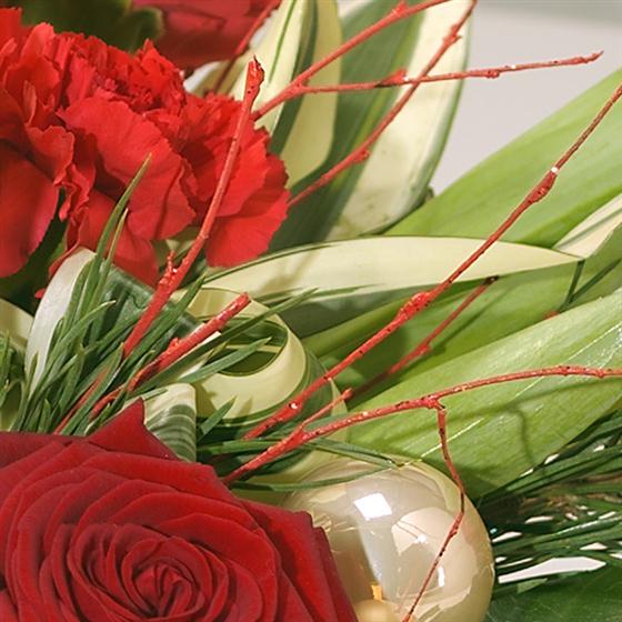 Create a stunning holiday ambiance with our exquisite Christmas Centrepiece. This enchanting arrangement features beautiful burgundy Germini, vibrant red Tulips, elegant Roses, and charming Carnations, meticulously crafted to elevate your festive decorating. Enhanced with an array of lush winter foliage, this centrepiece will bring warmth and cheer to your seasonal celebrations. Perfect for dining tables, mantels, or as a thoughtful gift, our Christmas Centrepiece is a must-have for creating memorable moments this holiday season.