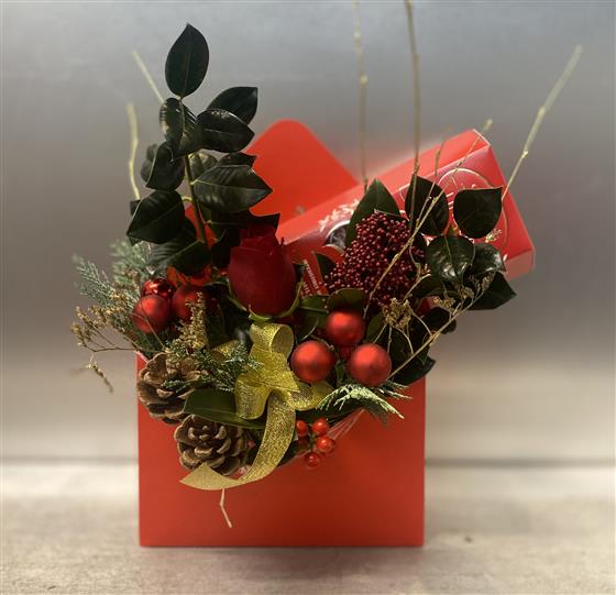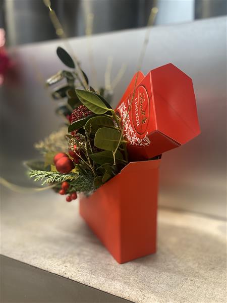 Brighten the holiday season with our enchanting Christmas Envelope Gift Box, designed to spread festive cheer. Filled with vibrant foliage, fresh pinecones and holly sprigs, this delightful arrangement captures the essence of Christmas. Each gift box comes complete with a complimentary box of indulgent Lindt Lindor Chocolates, making it the perfect present for friends, family, or colleagues. Celebrate the season with a thoughtful gift that brings joy and warmth, ensuring a memorable celebration. Order now to share the spirit of Christmas!