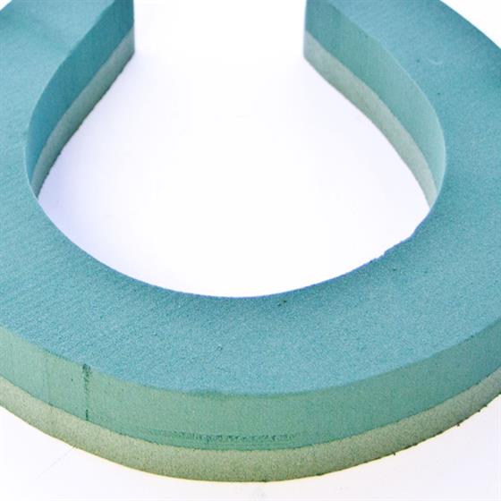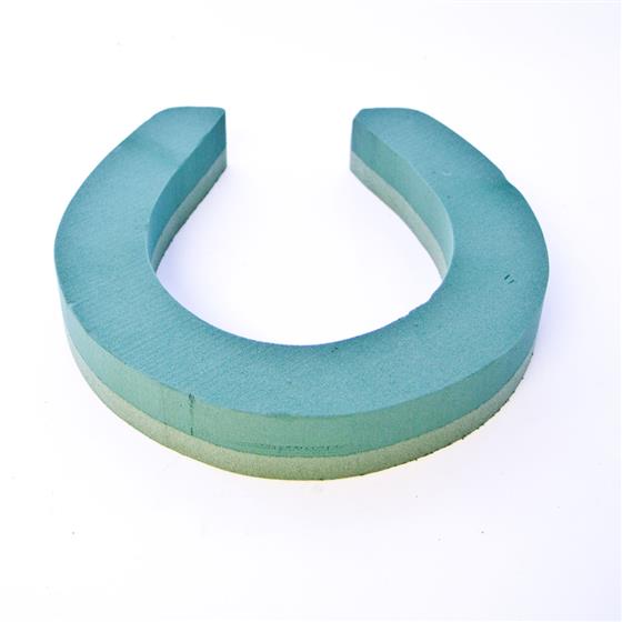 Floral foam horseshoe shape for funeral tributes. Made from wetable floral foam with a waterproof backing sheet, for use with fresh flowers.