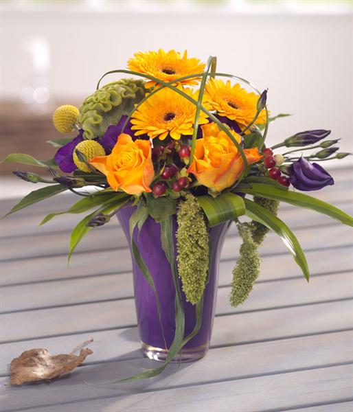 Immerse your home in autumn’s charm with our Autumn Leaves container arrangement, featuring golden Germini and Roses artfully paired with vivid purple Lisianthus. Elegantly presented in a chic pot, it offers same-day delivery by your local Aldershot florist. Available in multiple sizes—from Standard to Supreme—this best-selling fall classic brings cosy, seasonal warmth to any space.
