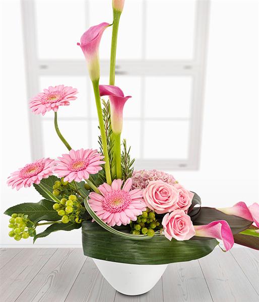 Make any occasion unforgettable with Ensemble, our elegant flower arrangement featuring a harmonious blend of seasonal blooms. Expertly crafted by Ray's Florist in Ash, this sophisticated arrangement combines premium roses, cala lilies, and complementary foliage for a timeless floral gift.