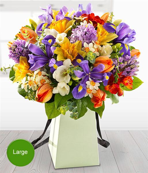 Please note that due to the seasonal availability of flowers it may be necessary to vary individual stems from those shown. Our skilled florists may substitute flowers for one similar in style, quality, colour and value. Where our designs include a sundry item or presentation product like a vase, basket, cellophane pattern/colour, coloured paper wrap, bag or bow it may not always be possible to include the exact item as displayed. If such an occasion arises we will make every effort to replace the item with a suitable alternative. The exact number of stems may vary from the image displayed as the price of flowers fluctuate throughout the year. We use flowers that are fresh and mostly in bud to ensure longevity for our customers. Most images in our webshop show floral gifts that have flowers in full bloom. We prefer to send you flowers that open up and bloom in your vase, rather than in our shop!
