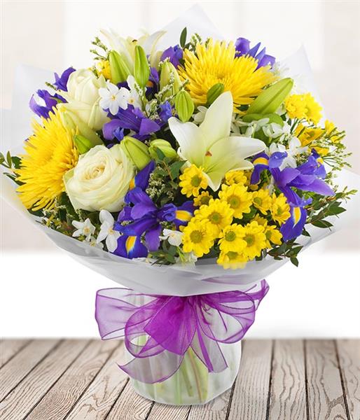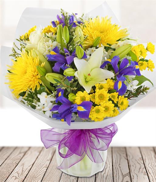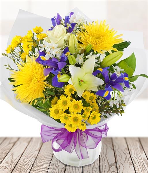 Make birthdays unforgettable with our Spring Birthday bouquet from Rays Florist. This vibrant arrangement features a stunning array of seasonal flowers, including cheerful daisies, radiant Iris and lively lilies, expertly crafted to celebrate the joy of the occasion. Each bouquet is handpicked for freshness and delivered in elegant packaging, ensuring a delightful surprise for your loved ones. Spread happiness and warmth with this colourful gift, perfect for birthdays or any special celebration. Order today for same-day delivery!