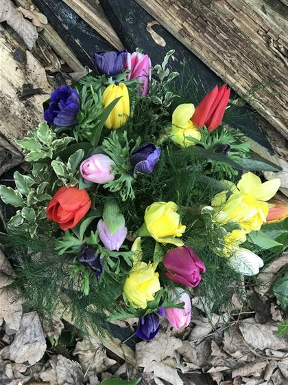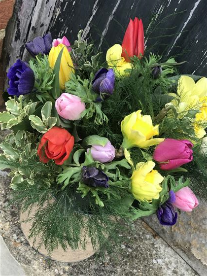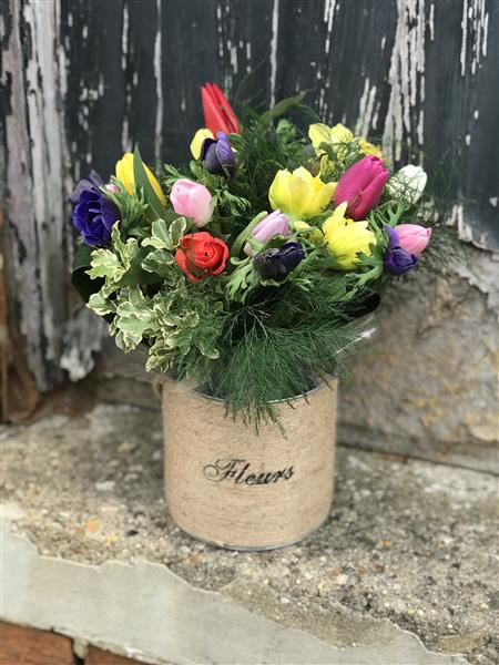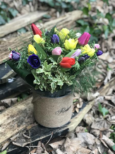 Experience the joy of spring with our Spring Delight bouquet from Rays Florist. This exquisite arrangement features a vibrant mix of seasonal blooms, showcasing sunny yellows, bright oranges and purples that capture the essence of a cheerful spring day. Handcrafted by our skilled florists, each bouquet is designed to brighten any occasion, whether it's a birthday, anniversary, or just a special surprise. Bring a touch of nature’s beauty indoors by ordering your Spring Delight bouquet today for same-day local delivery!