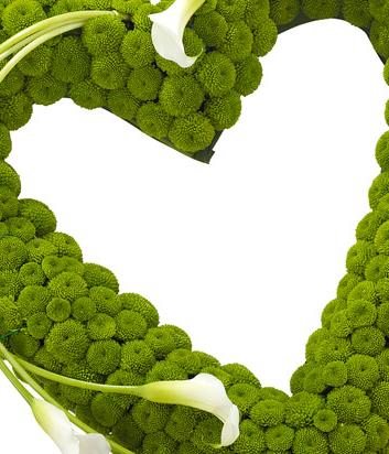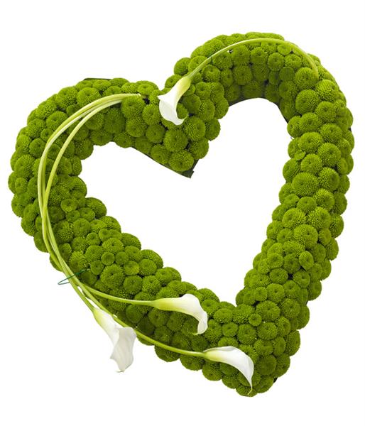 A Calla Lily open heart based with green spray Chrysanthemums.