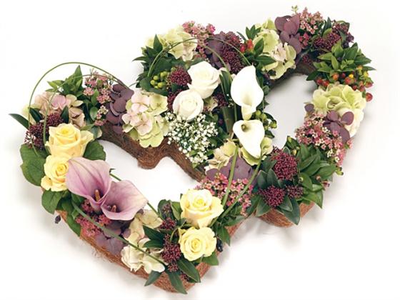 The Double Open Heart Tribute from Rays Florist is a stunning symmetrical arrangement featuring two intertwined hearts in soft tones of pink, white and cream. Handcrafted with Cala lilies, hydrangea, roses and seasonal foliage, this tribute combines grace and texture. Measuring approximately 38 × 58 cm (15" x 23"), it offers a heartfelt symbol of love and remembrance. Expertly created and delivered locally across most GU postcodes with care and professionalism.