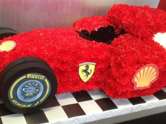 The Ferrari Formula 1 Car 3D Tribute is a striking funeral design created to honour a motorsport enthusiast. Expertly handcrafted with precision flowers, this detailed 3D tribute captures the spirit of Ferrari and Formula 1 racing. A fitting choice to celebrate a passion for speed and cars, it makes a bold and unforgettable farewell. Rays Florist deliver locally across most GU postcodes.