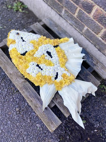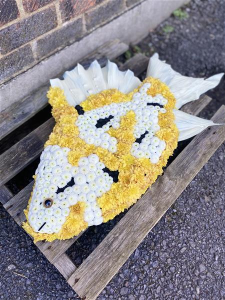 Our Koi Carp 2D Funeral Tribute is a striking floral design symbolising strength, perseverance, and peace. Crafted in the likeness of a koi fish, this tribute provides a meaningful way to celebrate the memory of a loved one who appreciated nature, water, or fishing. Designed with care by Rays Florist, we offer local delivery to most GU postcodes. Each tribute is handmade with the highest attention to detail.