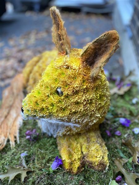 Perfect for commemorating a life well-lived, our Fox Tribute is ideal for funerals or memorial services, providing a touching visual representation of your feelings. With its artistic craftsmanship and attention to detail, this floral arrangement stands out as a symbol of love and respect during difficult times.