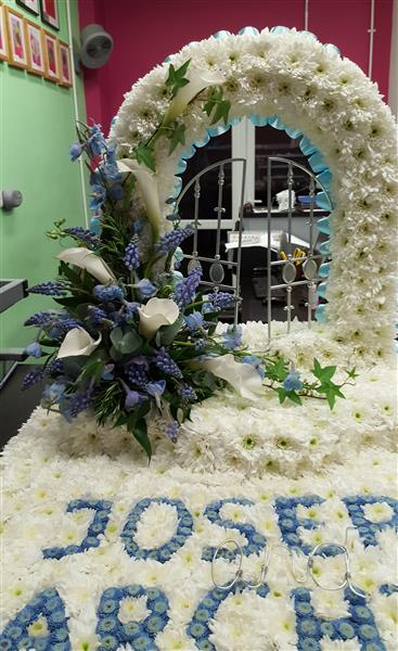 Honour a loved one with our Large Gates of Heaven floral tribute. This majestic arrangement evokes heavenly gates in a symphony of premium blooms and foliage. Ideal for large funeral services or memorial displays, it conveys dignity and reverence. Our experienced florists handcraft each tribute and Rays Florist delivers locally across most GU postcodes to ensure timely, respectful placement.