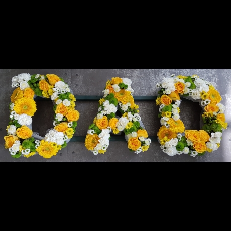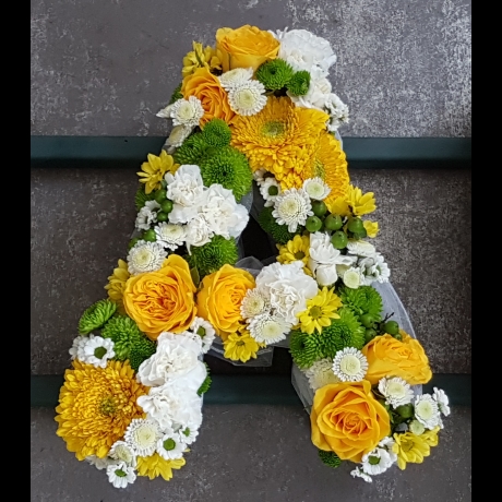 Our Loose Letter Lime, White and Yellow floral tribute offers a refreshing combination of lime, white, and yellow flowers. Personalise this tribute to spell any name or word, creating a unique and meaningful memorial. Rays Florist provides local delivery in most GU postcodes, ensuring your tribute is handled with the utmost care and arrives promptly.