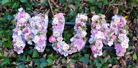MUM funeral flowers tribute in seasonal pink and lilac shades. Only the freshest pink and lilac flowers from Holland are used in this floral MUM tribute.