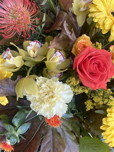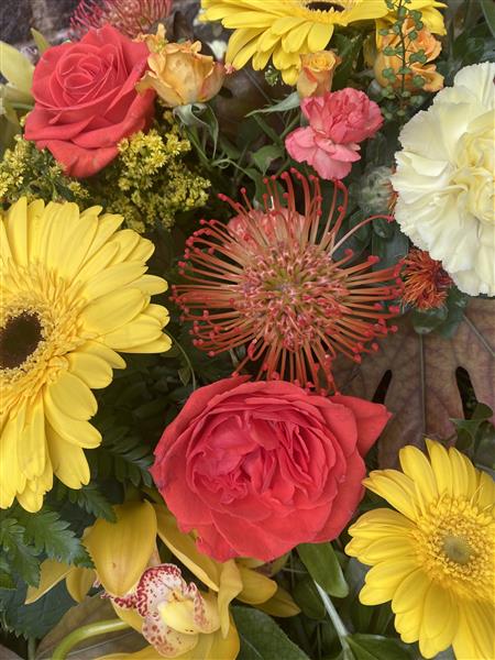 Please note that due to the seasonal availability of flowers it may be necessary to vary individual stems from those shown. Our skilled florists may substitute flowers for one similar in style, quality and value. Where our designs include a sundry item such as a basket, it may not always be possible to include the exact item as displayed. If such an occasion arises we will replace the item with a suitable alternative.