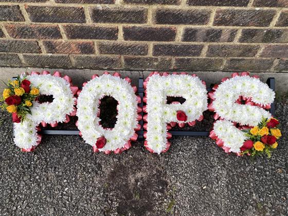 Honour a loved one with our POPS funeral flower tribute, crafted in elegant white with delicate floral detail. This classic based tribute is designed to express love and remembrance with grace and dignity. Handmade by Rays Florist, it offers a touching way to celebrate cherished memories. We deliver locally across most GU postcodes with care and compassion.