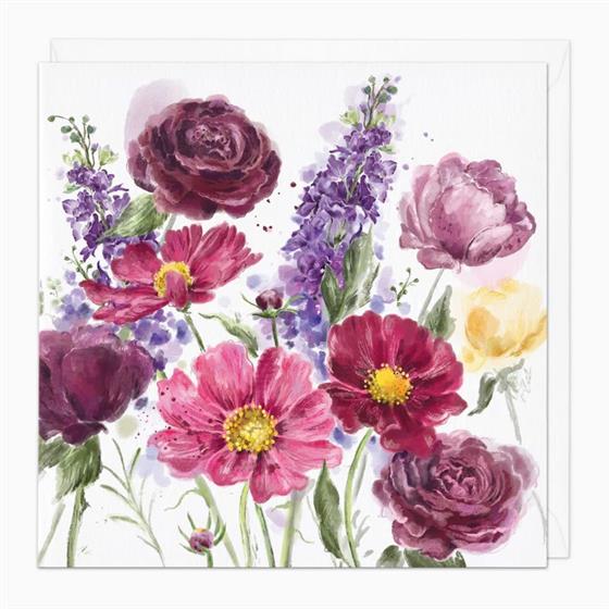 Cosmos & Roses art card featuring delicate hand-drawn cosmos and roses in vibrant colours. Perfect for birthdays, anniversaries, or thoughtful messages. Professionally printed and available for local delivery in Aldershot and GU postcodes, ensuring your card arrives in pristine condition ready to send or gift. Ideal for sending a personal message with style and care.