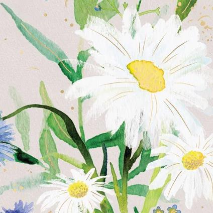 Messy Daisies floral art card showcasing playful, hand-drawn daisy blooms in vibrant natural tones. Ideal for sending thoughtful messages for birthdays, thank-yous, or everyday notes. Available for local delivery in Aldershot GU, this greeting card is prepared with care by Rays Florist to ensure a beautiful, lasting impression.