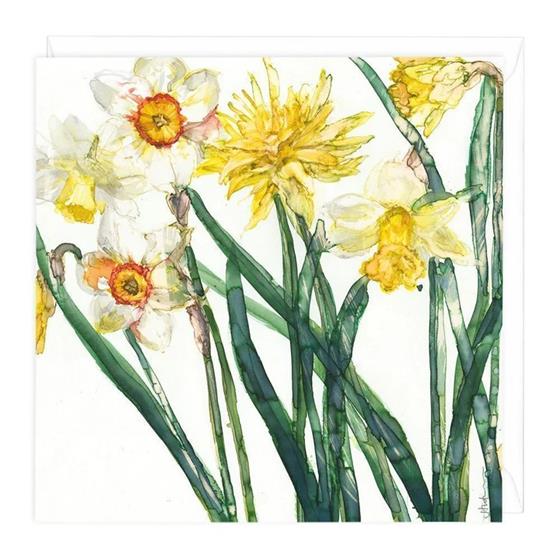 Add a Narcissus & Daffodil luxury plain greetings card to your flower order. Hand crafted floral related designs to make your flower bouquet delivery that extra bit special. Card is blank inside and the card message you provide at checkout will be handwritten in your chosen card.