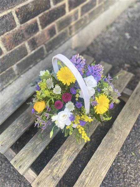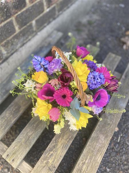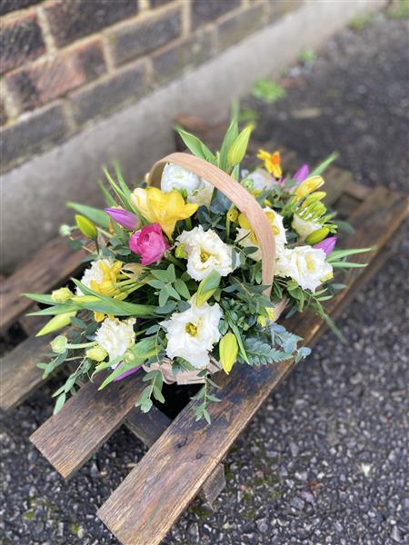 Brighten any occasion with the Spring Florist Choice Gift Basket, filled with seasonal flowers, fresh foliage, and natural accents. Hand-arranged for a vibrant, thoughtful gift, this bouquet can be delivered directly to homes or businesses in Aldershot, GU. Perfect for birthdays, celebrations, or simply to bring joy with fresh, seasonal blooms.